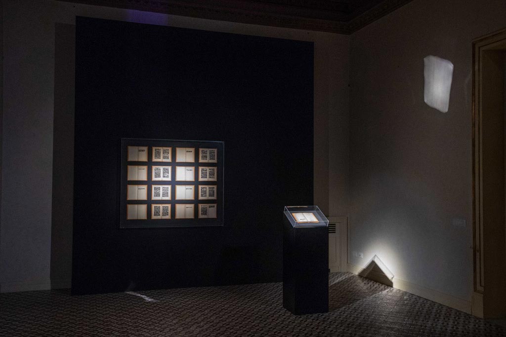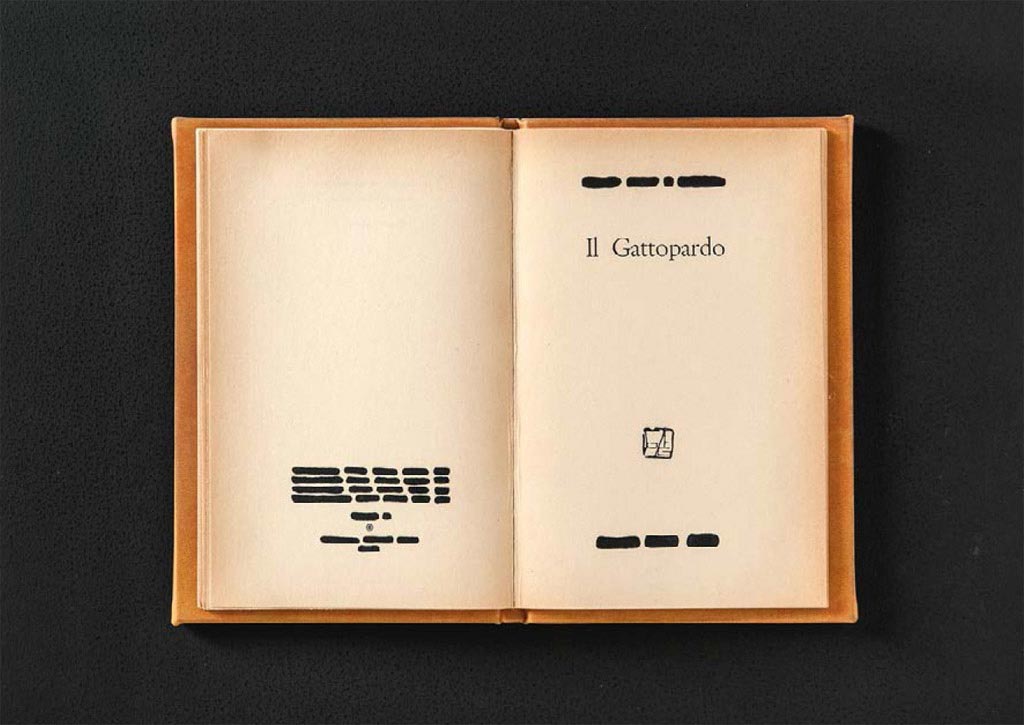 Nell’installazione “Resurrezione e morte del Gattopardo” - prima la resurrezione, dopo la morte, secondo un rovesciamento tipico di Isgrò - affiorano e scompaiono dalle pagine bianche e nere i personaggi più amati del libro: il Principe di Salina, Tancredi, Angelica, Padre Pirrone, in un dialogo serrato e universale sull’arte, la vita, la morte.